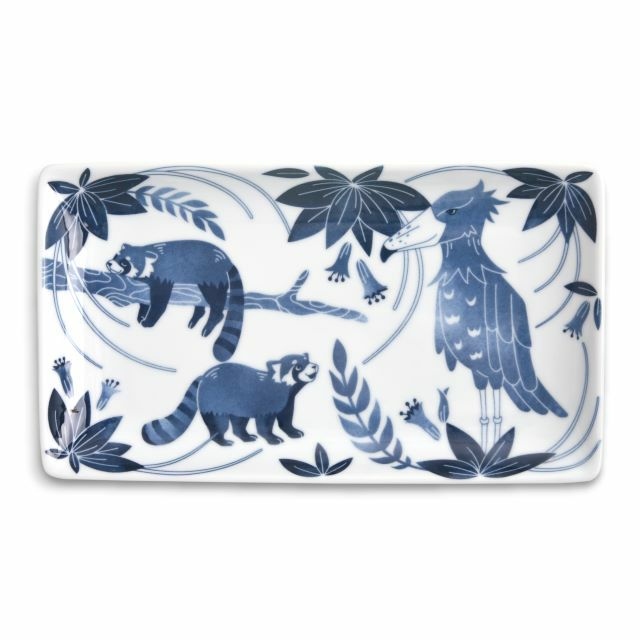 【染付古波佐見】 長角皿〈波佐見焼〉 ハシビロコウ