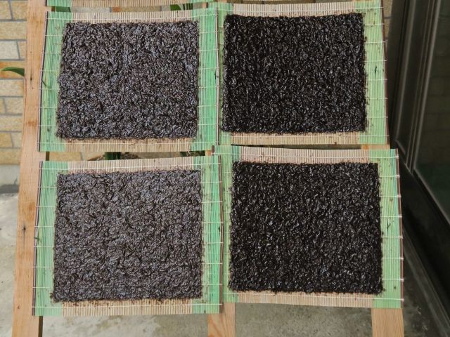 そして砕いたものを、海苔簀(のりす)に入れて、乾燥させます。