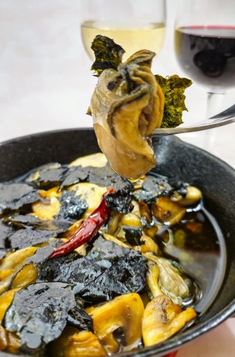 - まだパリパリな海苔を牡蠣に乗せて食べるもよし、旨味をたっぷり吸わせて、シナシナになった海苔も美味しいです!