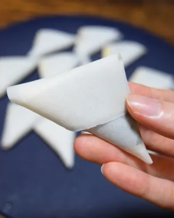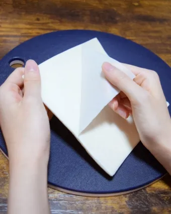 手前から三角になるように折っていきます。