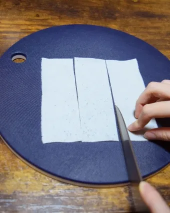 写真のように、3等分に包丁で切ります。