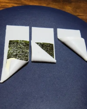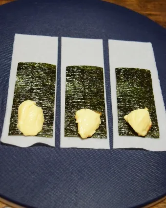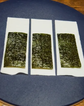 海苔の上にプリンをのせます。