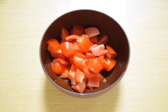 トマトを1cmの角切りにします。