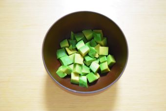 アボカドを1cmの角切りにします。