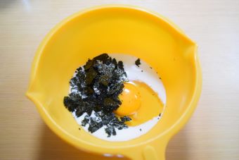 姫ひじき塩海苔をちぎって加えます。