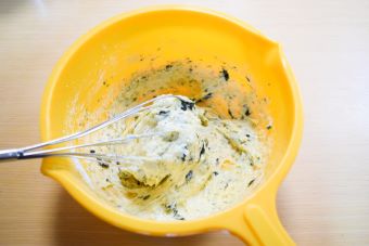 泡だて器で混ぜます。