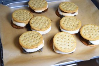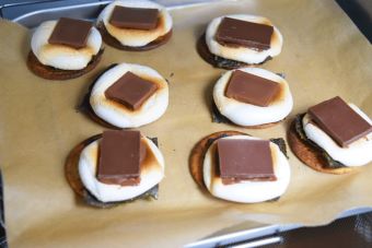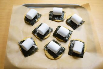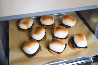 トースターで2分ほど焼きマシュマロに焼き色をつけます。