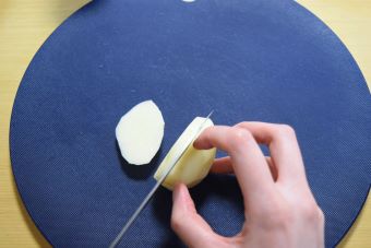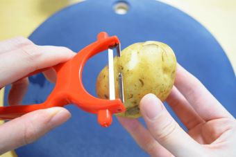 じゃがいもの皮をピーラーでむきます。