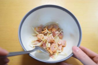 ①を耐熱容器に入れ、◎を加えて混ぜ合わせます。