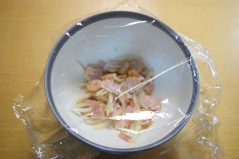 耐熱容器に入れラップをふんわりとかけ、500Wで3分加熱します。