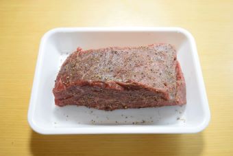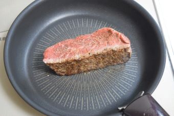 牛もも肉に塩と胡椒を表面にすり込みます。