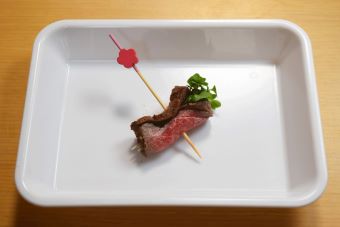 ブロッコリースプラウトをくるっと包んだローストビーフを串にさしたパーティにもぴったりのレシピです。紫蘇海苔を使ったさっぱりとした味わいのソースでいただきます。