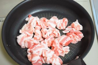 同じフライパンに豚肉を入れ火が通るまで炒めます。