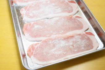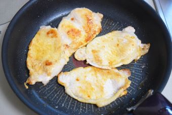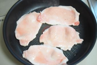 フライパンに油をひき、①の豚肉を中火で焼きます。