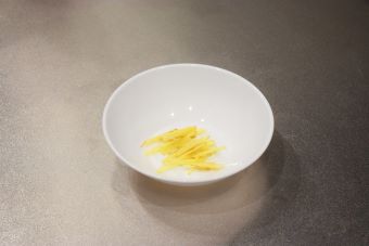 海苔の上に⑥をのせ、仕上げに糸唐辛子をのせ、お好みですだちを添えて完成です。