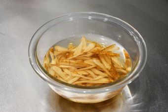 鍋にごま油をひき、中火でごぼうを2分炒めます。