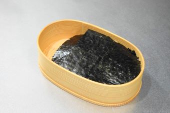 お弁当箱にごはんを盛り、海苔を敷き詰めます。