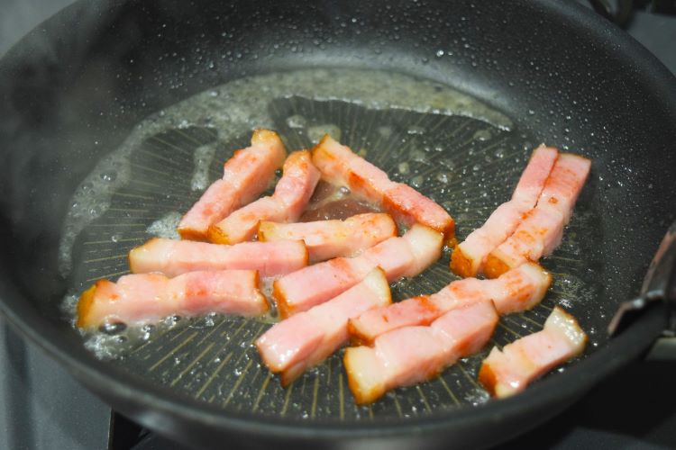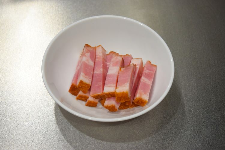 ベーコンに焼き色が付いたら白ワインを加えます。
