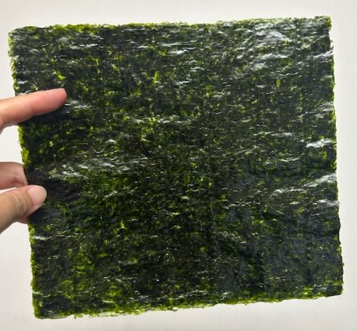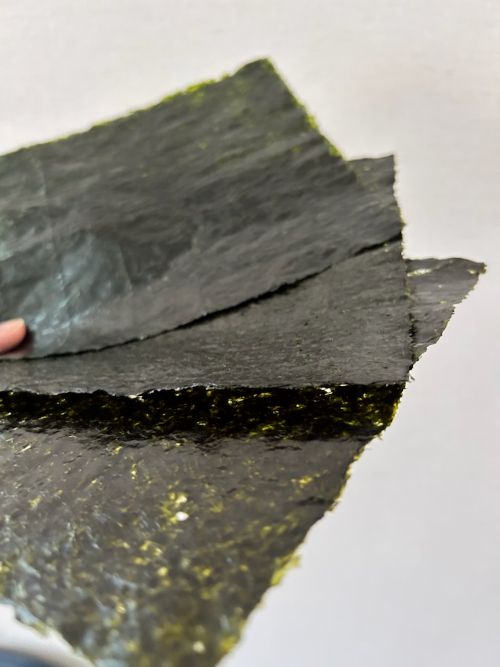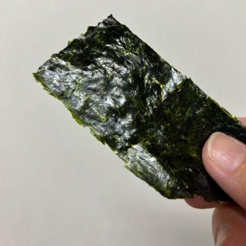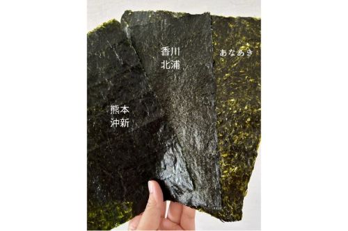 ほどよい厚みがあるので、食べ応えがあったり、お米に巻いても海苔の水分に対し踏ん張りがきく(すぐに海苔がしなっとなりにくい)、など使いやすい海苔ということです。