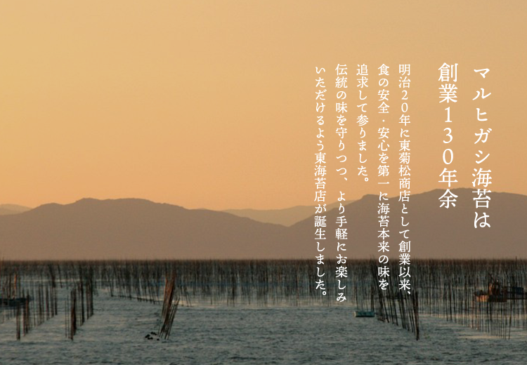 マルヒガシ海苔の伝統を守りつつ、全国の皆さまに「おいしい海苔」をお届けできるよう、新ブランド「東海苔店」を立ち上げ、ECサイトを公開させていただきました。