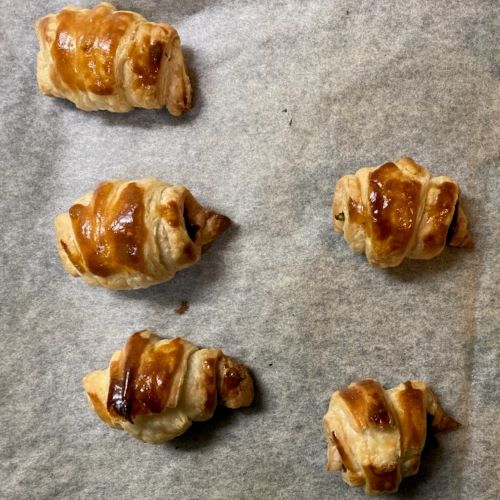くるくる巻いたら温めたオーブンで15分から20分ほど焼いていきます。