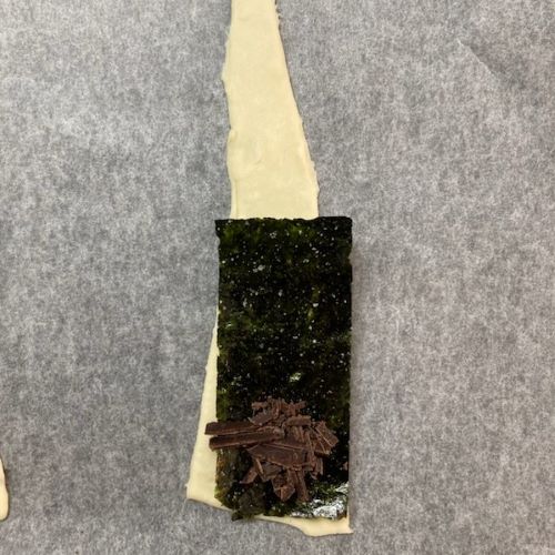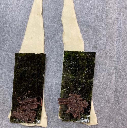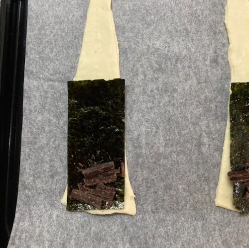 そしてチョコレートと海苔をのせます。